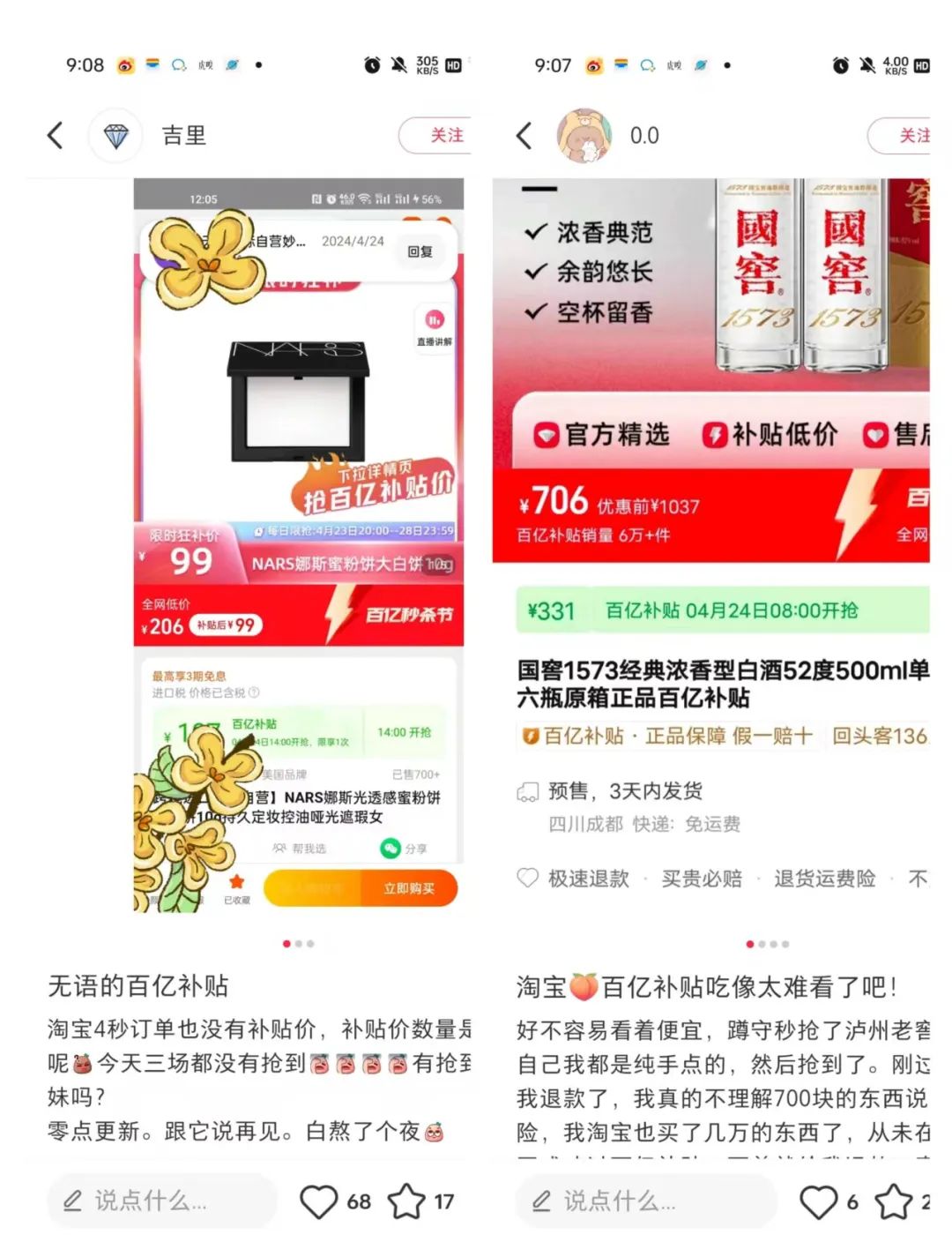 不過(guò)更大的優(yōu)惠力度,并沒(méi)有像之前的百億補(bǔ)貼一樣收獲全網(wǎng)好評(píng),反而有部分消費(fèi)者開(kāi)始在社交媒體上吐槽起“不好搶”“搶到了主動(dòng)發(fā)起退款”等糟糕體驗(yàn)。