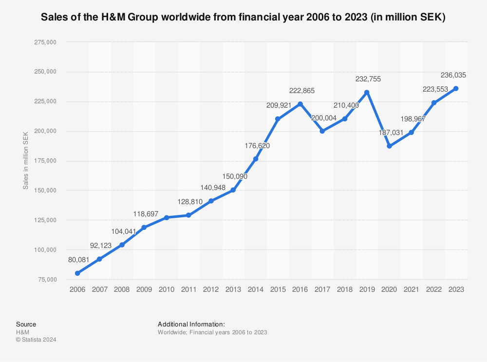 2006-2023年 H&M集團(tuán)全球營收