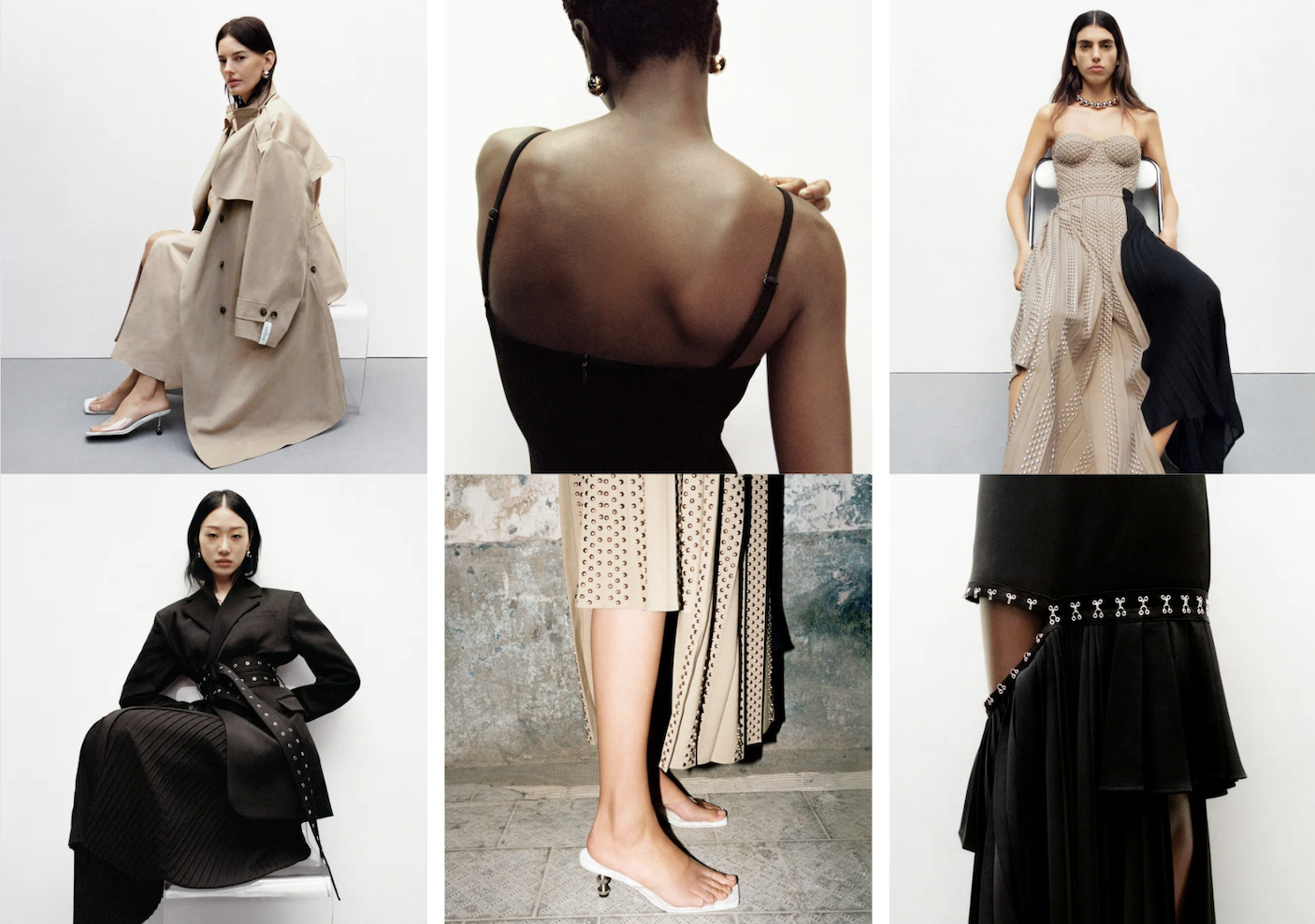 本月,H&M與韓國設(shè)計(jì)師Rokh Hwang的聯(lián)名系列正式發(fā)售,據(jù)H&M官網(wǎng)的宣傳,這是一系列“重新思考和顛覆經(jīng)典職業(yè)裝”的作品。多數(shù)單品以黑色&卡其色為主色調(diào),視覺風(fēng)格足夠低調(diào),但大衣的雙層設(shè)計(jì)、連衣裙的可拆卸領(lǐng)口,以及手風(fēng)琴形狀的公文包等設(shè)計(jì)又藏有巧思。