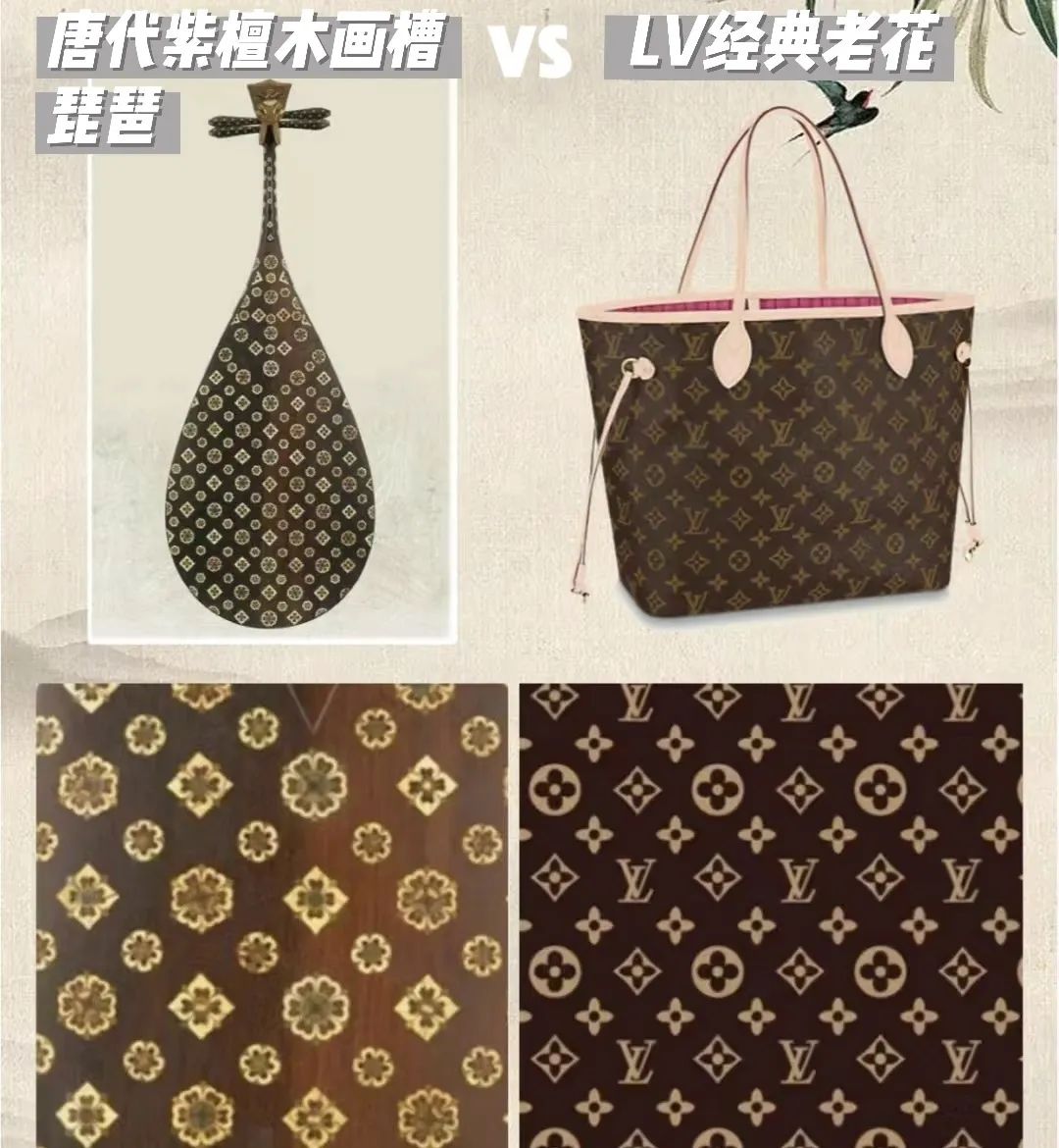 比如兩年前Dior的文化挪用事件,老祖宗也沒有版權(quán),讓馬面裙一路賣爆到現(xiàn)在;LV的老花紋像極了咱唐代螺鈿琵琶上的寶相花紋;