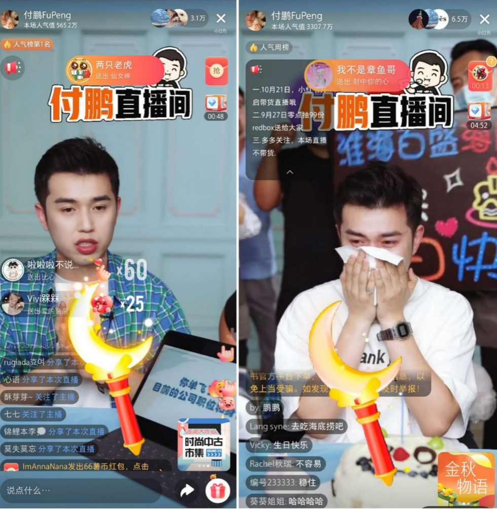 付鵬很快開始自己直播帶貨,并拿下了一定成績。2020年10月,付鵬在小紅書開啟直播首秀,官方戰(zhàn)報數(shù)據(jù)顯示,人氣值達到2億,累計觀看人數(shù)74萬。同年雙11大促期間,付鵬再次開播,完成了單場成交額約2000萬元的業(yè)績,創(chuàng)下當時平臺帶貨新紀錄。次年1月,他又轉戰(zhàn)抖音,據(jù)新抖監(jiān)測數(shù)據(jù),抖音直播總觀看量近400萬,銷售額368.94萬元。