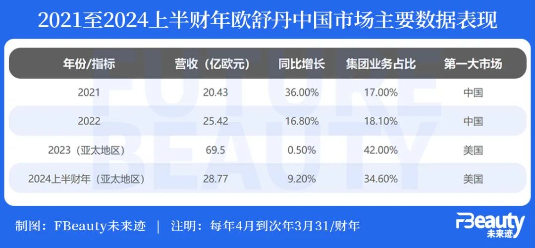2021財(cái)年歐舒丹在大中華區(qū)銷售額實(shí)現(xiàn)4.06億歐元(約合人民幣31.90億元),中國內(nèi)地銷售額在集團(tuán)業(yè)務(wù)中占比為17.0%,中國首次一躍成為歐舒丹全球第一大市場(chǎng)。