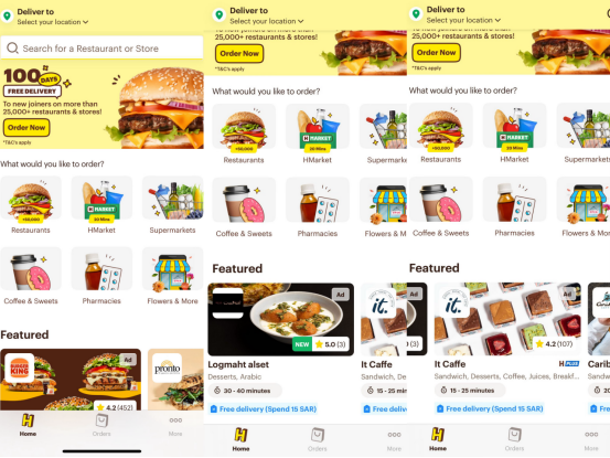第二家是KeeTa在港曾巷戰(zhàn)過的老對手,德國外賣巨頭Deliver Hero旗下的沙特子公司Hunger Station。一位當(dāng)?shù)刂匈Y機(jī)構(gòu)人士曾使用過該產(chǎn)品,從應(yīng)用端截圖信息可知,Hunger Station目前推出了一個“100天免費”的會員政策,提供免費送貨與最快15-25分鐘的配送時效。