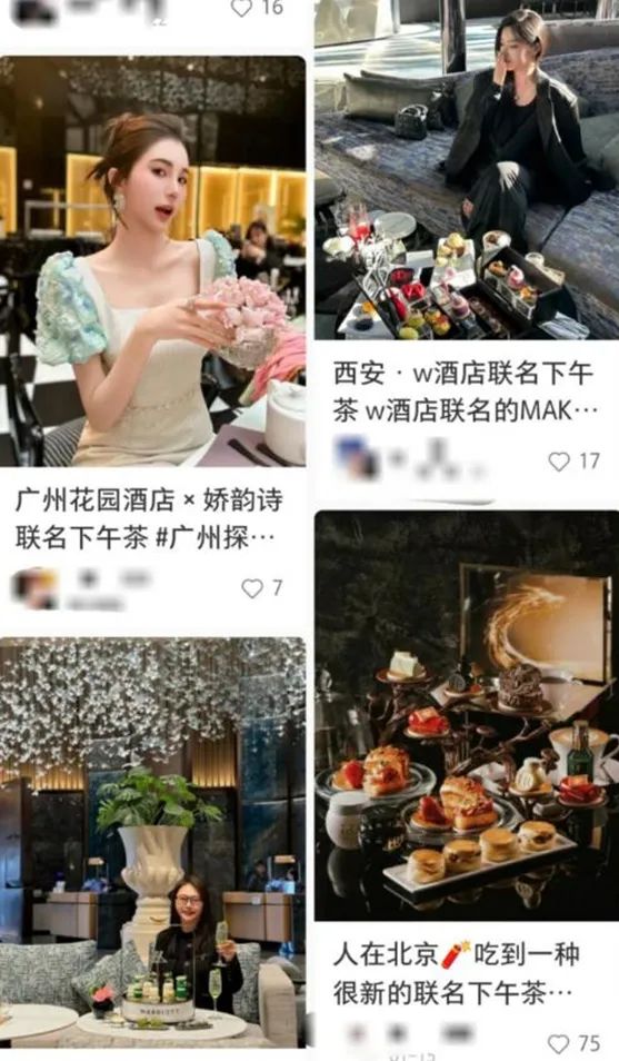 在小紅書平臺(tái),以“美妝 酒店下午茶”為關(guān)鍵詞搜索,可以發(fā)現(xiàn)有不少網(wǎng)紅博主或素人專門去打卡拍照,分享感受。不少人提及酒店的細(xì)致化服務(wù)和舒適環(huán)境,為酒店和品牌帶來了話題度和流量。