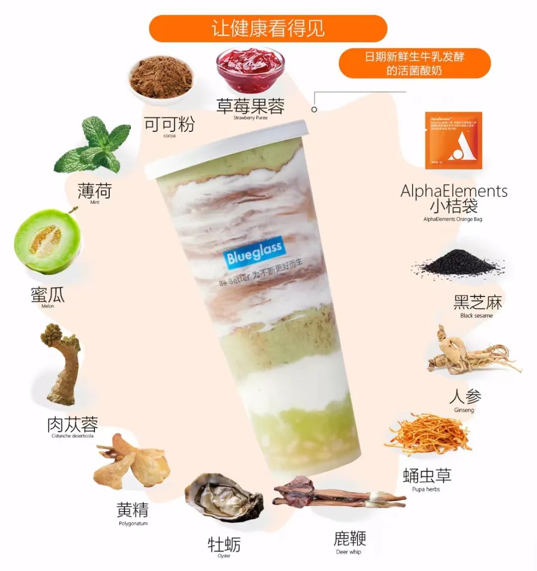 自Blueglass品牌誕生以來,一直以其“無糖”、“輕卡”、“無負擔”等健康理念吸引年輕消費者,門店內(nèi)醒目的“一杯讓你變好看的高品質(zhì)酸奶”廣告語也成為了追求健康生活方式的消費者的心頭好。