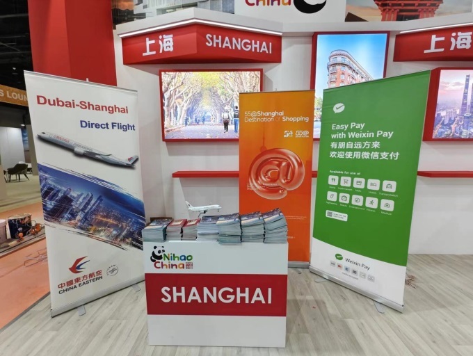 5月6日舉行的阿拉伯旅游展上,上海文旅展位上的微信支付使用指南。在面向中東地區(qū)規(guī)模最大的專業(yè)旅游展會中,微信支付助力上海向中東旅游市場深度介紹上海城市文旅與便利化服務(wù)。