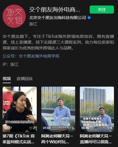 另外一家直播機(jī)構(gòu)“交個(gè)朋友”,也在積極布局海外電商培訓(xùn)業(yè)務(wù)。其中,“交個(gè)朋友海外電商學(xué)苑”聚焦TikTok電商培訓(xùn)。