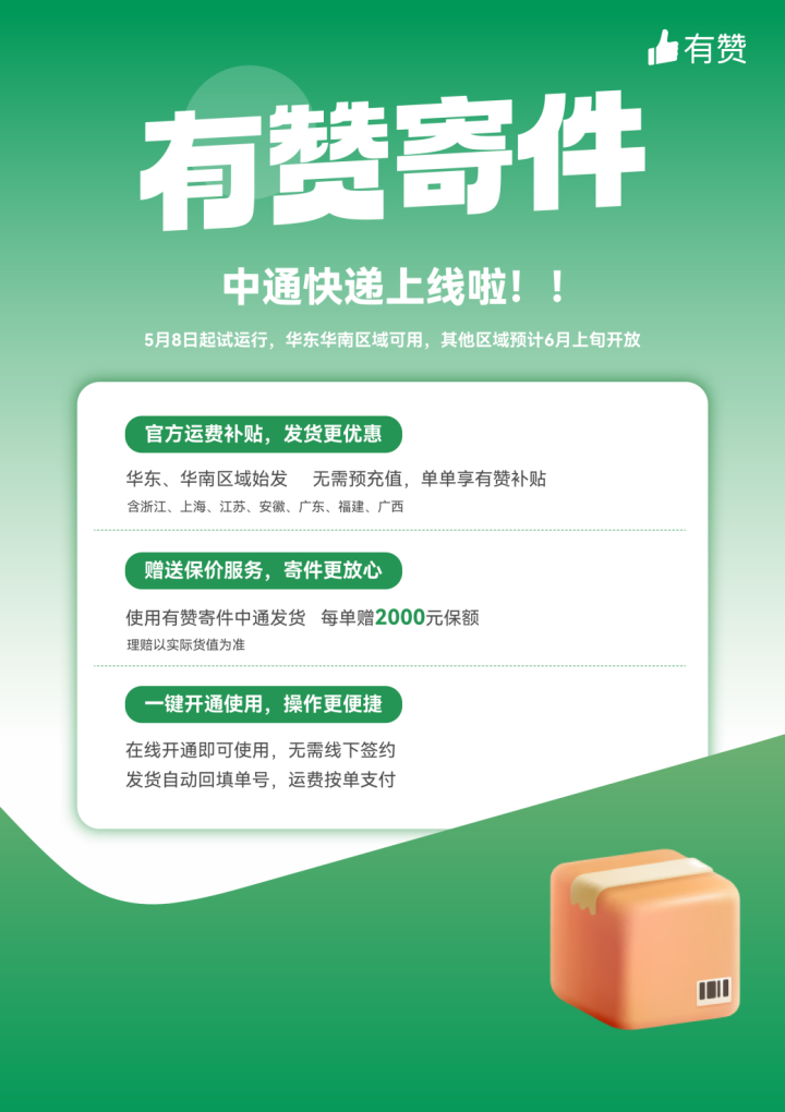有贊攜手中通上新寄件服務(wù):單單享運(yùn)費(fèi)補(bǔ)貼