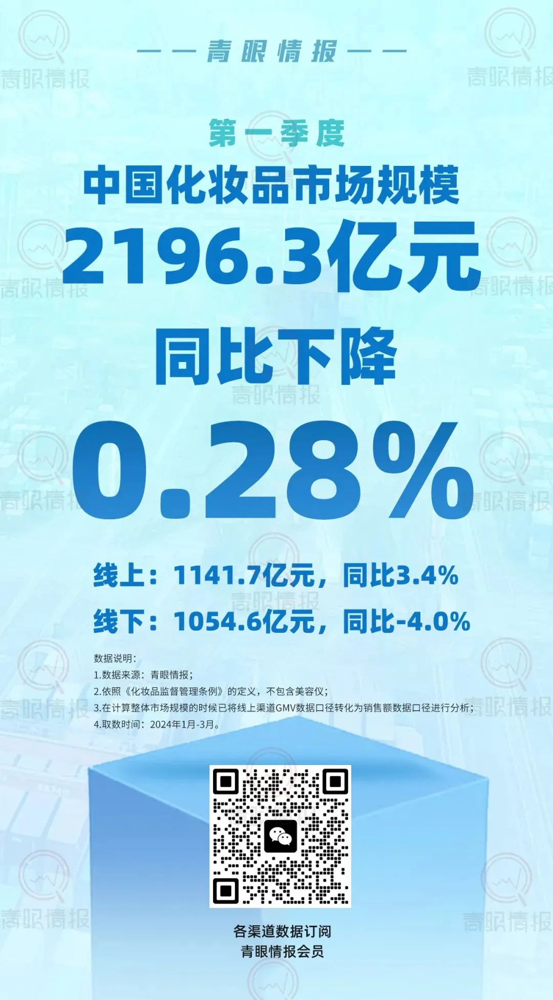 化妝品市場(chǎng)增速放緩已成為不爭(zhēng)的事實(shí)。承接上一年的低迷狀態(tài),今年一季度美妝大盤(pán)整體表現(xiàn)也不太樂(lè)觀。據(jù)青眼情報(bào)數(shù)據(jù)顯示,今年一季度,中國(guó)化妝品市場(chǎng)規(guī)模為2196.3億元,同比下降了0.28%,其中線上規(guī)模為1141.7億元,同比增長(zhǎng)3.4%,線下為1054.6億元,同比下降了4%。