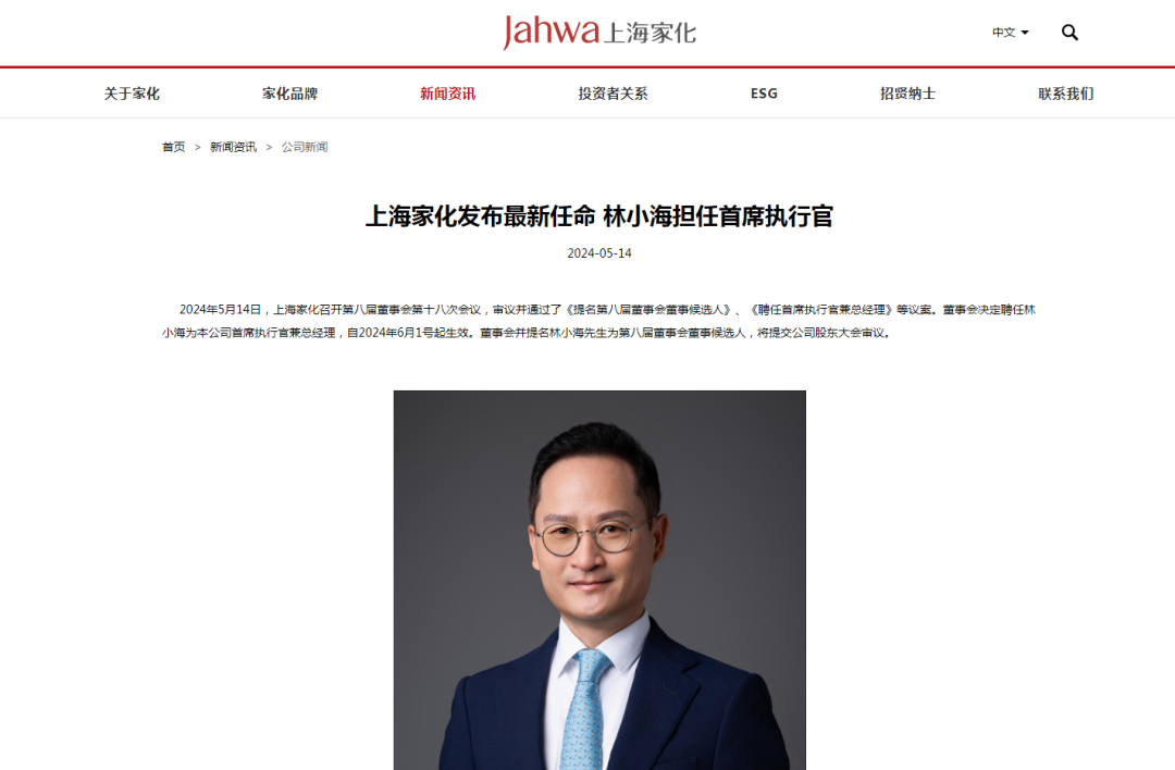 5月14日下午,上海家化發(fā)布人事變動(dòng)公告:潘秋生因個(gè)人原因辭去公司董事長(zhǎng)、首席執(zhí)行官等相關(guān)職務(wù)。董事會(huì)決定聘任林小海為公司首席執(zhí)行官兼總經(jīng)理,自2024年6月1日起生效;同時(shí),提名林小海為第八屆董事會(huì)董事候選人,將提交公司股東大會(huì)審議。