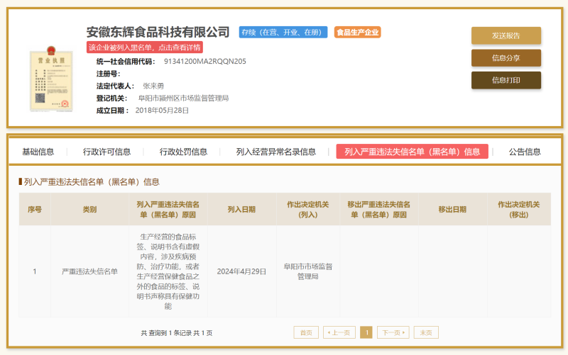 圖源:阜陽市市場監(jiān)督管理局行政處罰信息公開表
