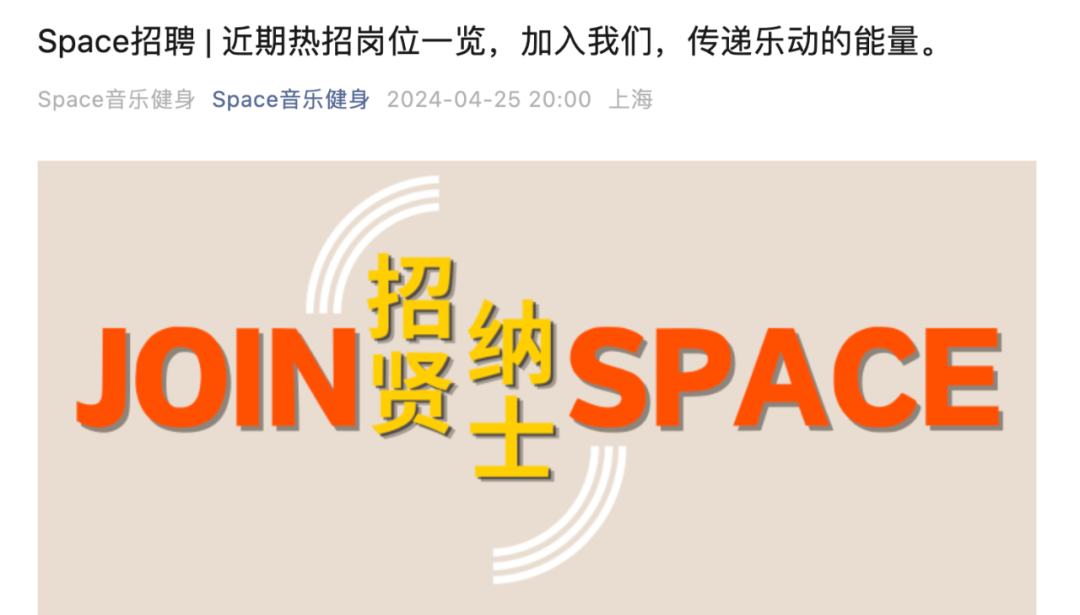 有會員表示,Space在三月底表示即將漲價,并開始大力推銷年卡,有不少會員因此升級課包,通知閉店時有的甚至還沒有開卡。倒閉前一周,Space官方還在推送崗位招聘通知,發(fā)布閉店公告當天,Space門店還在正常上課,有會員稱“老師還在說五一每天都有他的課,4月30日突然就收到了所有課取消的通知”。