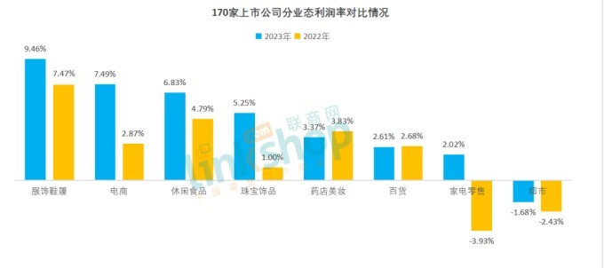 3、從業(yè)態(tài)利潤率來看,2023年超市業(yè)態(tài)繼續(xù)唯獨為負。