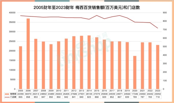 今年3月,有投資集團(tuán)提出欲以66億美元的報價收購梅西百貨,但此提議遭到了拒絕。此后,梅西百貨宣布大幅削減開支,預(yù)計在2024年關(guān)閉50家門店,到2026年將再關(guān)閉另外100家門店。