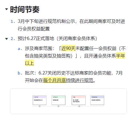 具體來看,新開通會員體系的商家在半年內(nèi)不會被關閉會員功能;已經(jīng)開通會員體系的商家在近90天內(nèi),必須有至少一項會員權益在線(不包含抽獎及抽簽購),且權益有庫存;