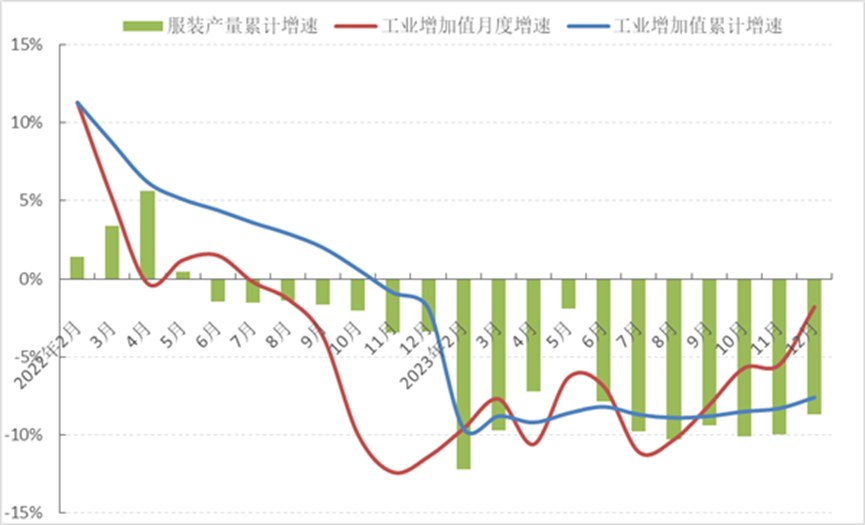 根據(jù)國家統(tǒng)計局披露的數(shù)據(jù),2023年,服裝行業(yè)規(guī)模以上企業(yè)梭織服裝產(chǎn)量為65.56億件,同比下跌15.01%,針織服裝產(chǎn)量為128.33億件,同比下跌5.08%,降幅同比分別加深9.86和2.84個百分點。