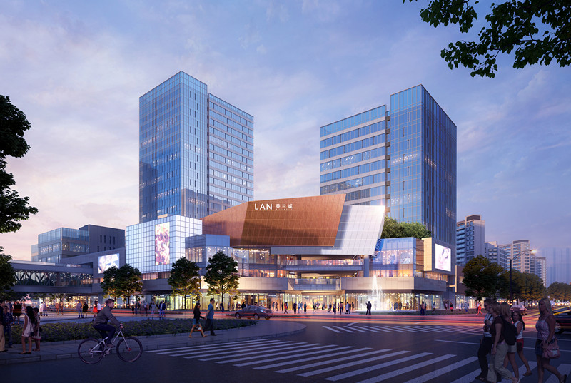 *左上和右上兩個建筑分別是盒子商業(yè)A館和B館,左下和右下兩個建筑分別是連廊式街區(qū)商業(yè)命名蘭巷和湖里