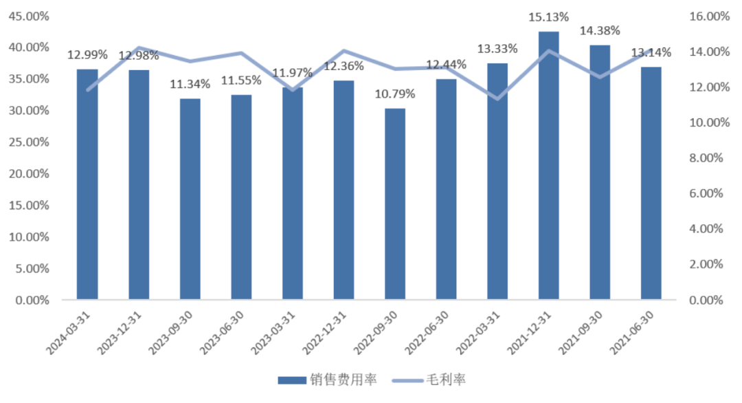 反應(yīng)在費(fèi)用率的角度,阿里巴巴集團(tuán)層面的毛利率整體表現(xiàn)還算穩(wěn)定,但單季度銷售費(fèi)用率還是出現(xiàn)上升趨勢(shì),這也是對(duì)阿里巴巴利潤(rùn)表現(xiàn)影響最大的一個(gè)財(cái)務(wù)項(xiàng)目。