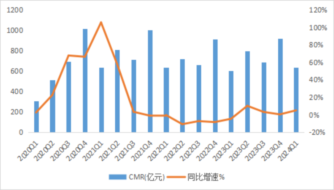 除了GMV和訂單量的高速擴(kuò)張外,本季度最核心的國(guó)內(nèi)零售客戶管理收入(CMR)在GMV高增長(zhǎng)的帶動(dòng)下也實(shí)現(xiàn)了5%的同比增長(zhǎng),相較上季度(0%)明顯提速,也超過了此前市場(chǎng)3%的預(yù)期,但仍與GMV增長(zhǎng)之間有一定差距,主要還是由于整體轉(zhuǎn)換率下降導(dǎo)致的。