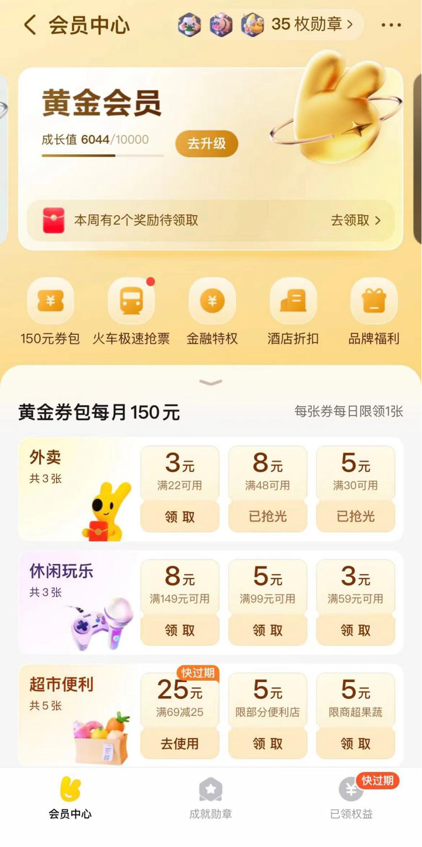 會(huì)員權(quán)益的核心為額外的紅包,與其他外賣平臺(tái)的紅包在類型和功能上非常相似,用于抵扣訂單金額。隨著平臺(tái)發(fā)展,優(yōu)惠范圍進(jìn)一步被細(xì)分和收縮,以前無門檻券同樣可以用在買藥等非餐飲品類,但現(xiàn)在基本上聚焦到餐飲外賣。至于其他的細(xì)分品類,也自生出了各自的會(huì)員體系。