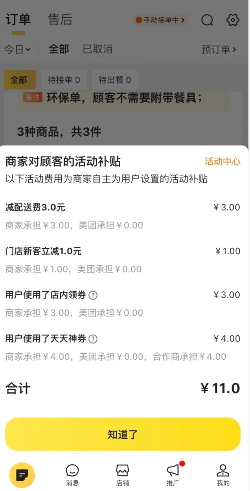 但反過來,神會(huì)員的升級(jí)意味著商家需要承擔(dān)更高的營銷成本。商家需要參與平臺(tái)的活動(dòng)和促銷,以獲取更多的流量和訂單,這就讓他們可能需要提供額外的優(yōu)惠和折扣,來吸引消費(fèi)者成為神會(huì)員。