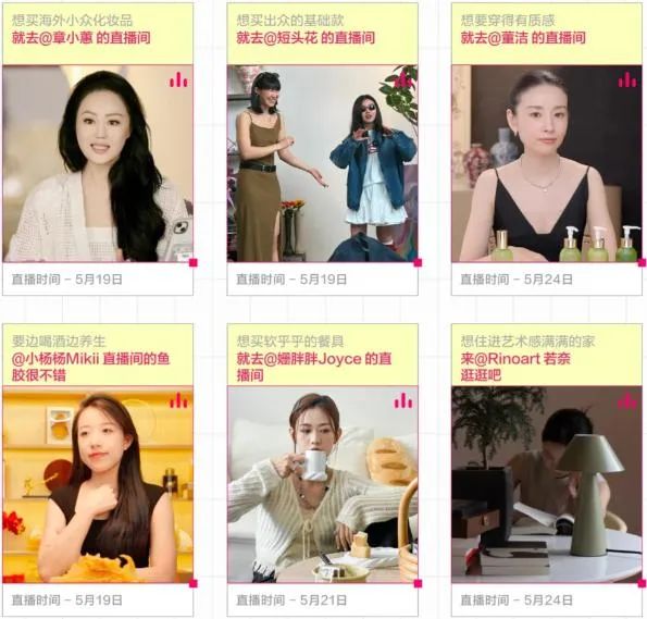 過去一年多,除了章小蕙、董潔這樣單場(chǎng)過億的超級(jí)買手,小紅書上單場(chǎng)銷售額突破千萬元的買手大量出現(xiàn)。根據(jù)小紅書發(fā)布的618買手直播日歷,包括吳昕、沈夢(mèng)辰、姜思達(dá)等明星買手,以及家具買手野柿子小姐、母嬰買手“四個(gè)娃組合生活”等普通人買手,將在小紅書大量開播。