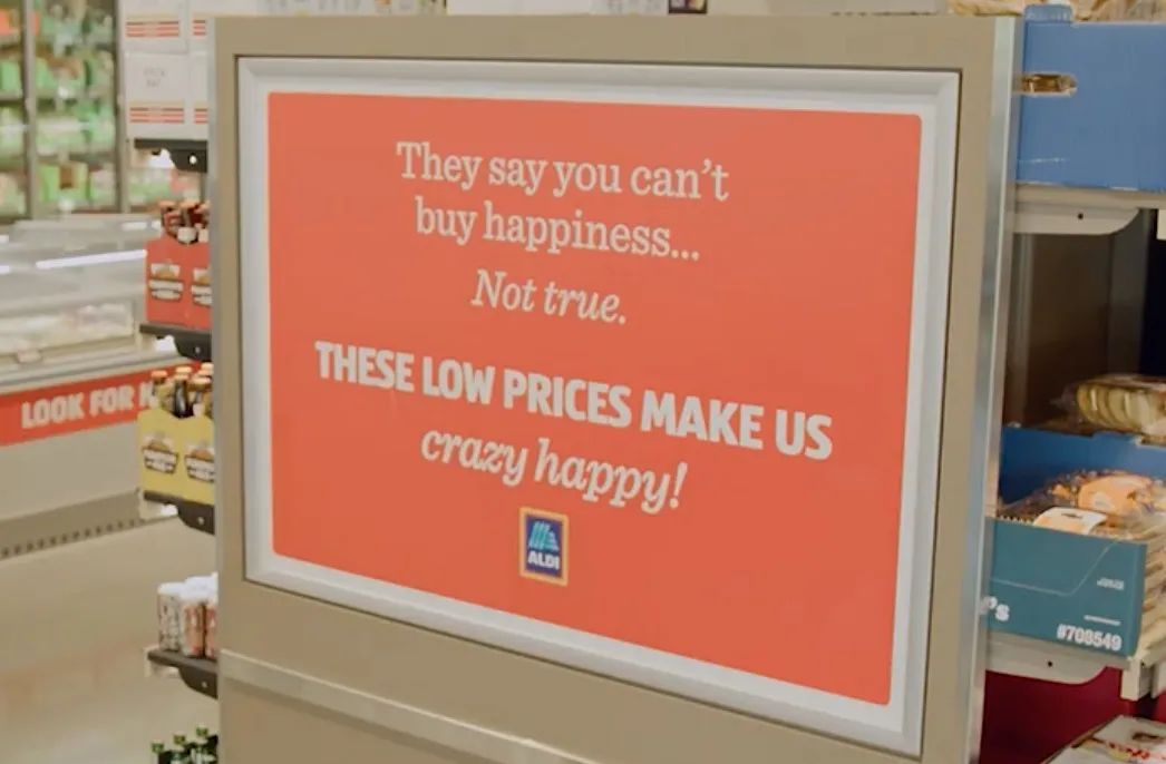 那么,為什么ALDI能如此受消費(fèi)者歡迎?或許,ALDI店內(nèi)的一塊廣告牌就能給出答案:
