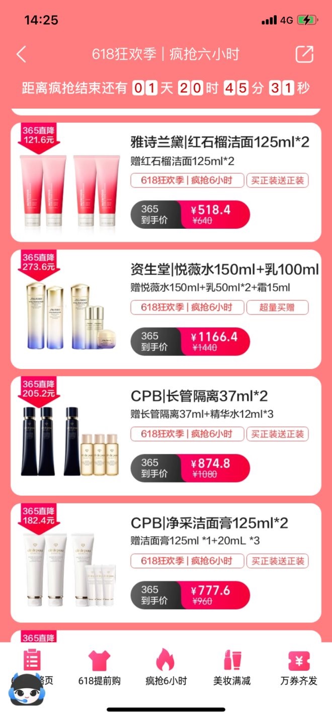 5月20日至5月23日,喵街“瘋搶6小時”美妝直播開賣,超百款美妝爆品套組超值買贈(包括買正送正、等量買贈,超量買贈)。5月26日,還有“全品類瘋搶”活動,INTIME365會員可以專享8.1折。