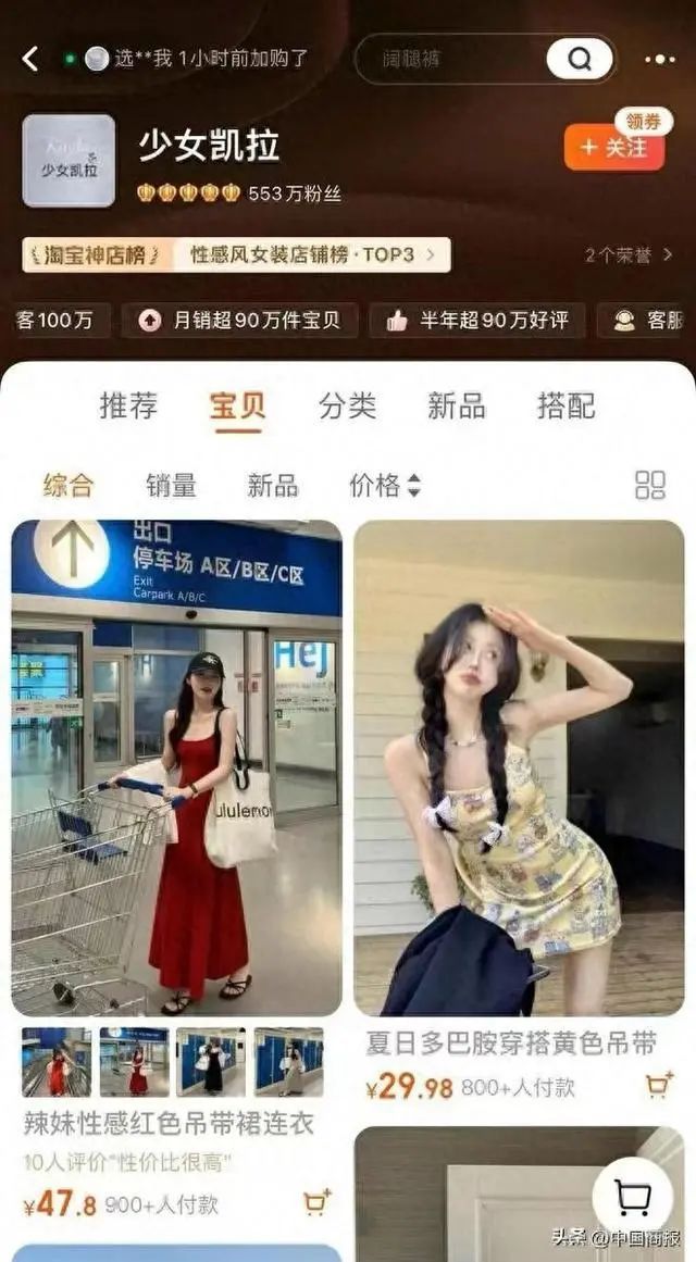 ▲少女凱拉未關(guān)閉前的淘寶店截圖。圖片顯示,該店鋪在“性感風(fēng)女裝店鋪榜”中位列TOP3。
