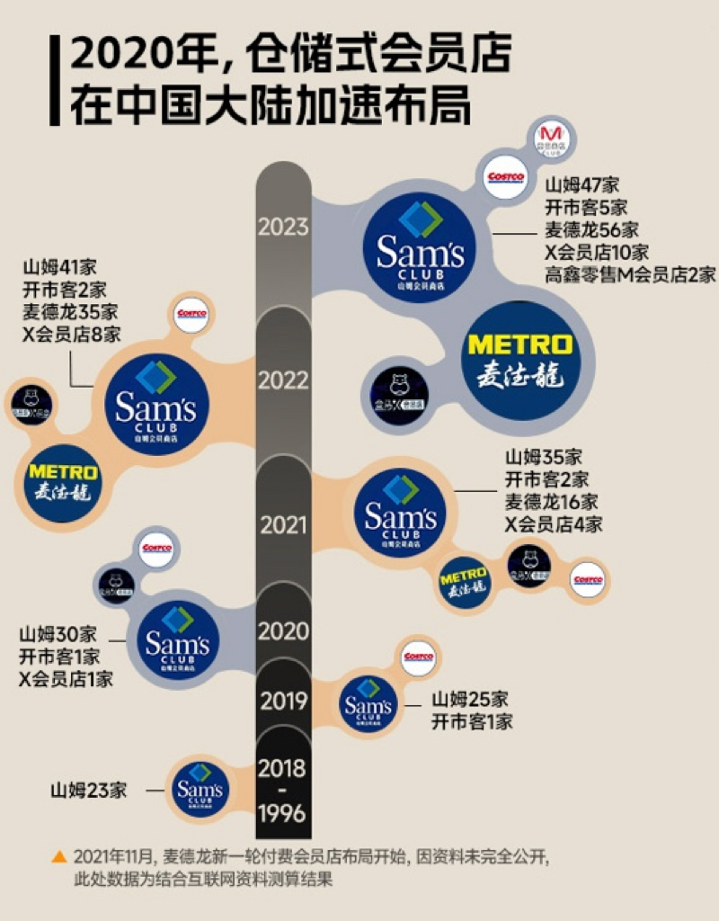 除了山姆、麥德龍、Costco在加快步伐,國內(nèi)本土的盒馬X會員店、FUDI、高鑫零售M會員店等也在加快步伐。