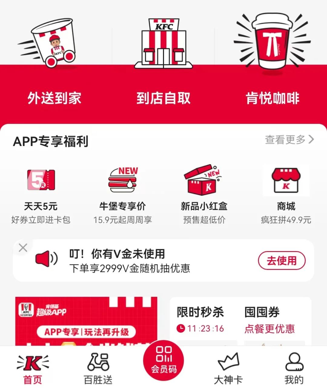 不過《聯(lián)商網(wǎng)》查閱發(fā)現(xiàn),肯悅咖啡已在肯德基APP中上線,成為“外送到家”“到店自取”以外的第三個(gè)點(diǎn)單入口,且在付費(fèi)會(huì)員欄目推出了肯悅專享的肯悅咖友卡,并簽約了流量明星白敬亭作為品牌代言人。