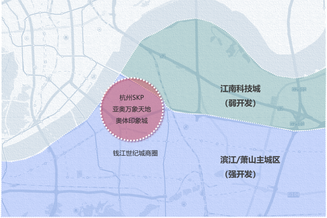 錢江北岸城市級商圈的地位,和輻射全城的能力始終無可替代。而過江隧道和地鐵在加強(qiáng)錢江世紀(jì)城與主城區(qū)聯(lián)系的同時,也會對世紀(jì)城商圈的客流產(chǎn)生強(qiáng)大的虹吸效應(yīng)。