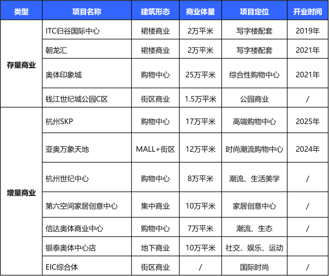 除此之外,錢江世紀(jì)城商圈的存量商業(yè)還有: