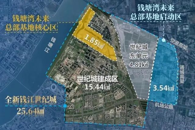 2023年錢江世紀(jì)城開啟建城20年來的首次擴(kuò)容,擴(kuò)容區(qū)塊面積約3.54平方公里,被確定為錢塘灣未來總部基地啟動區(qū),后將與總部基地核心區(qū)(1.85平方公里)雙向賦能、融合發(fā)展。