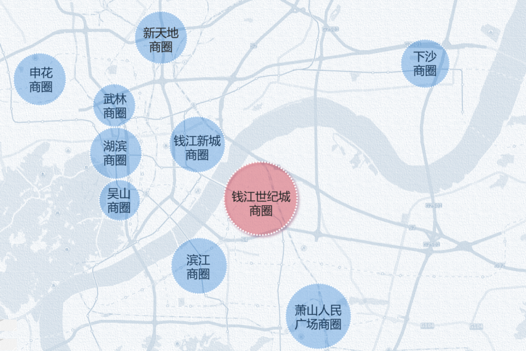 錢江世紀(jì)城商圈位于錢塘江南岸的錢江世紀(jì)城板塊,是伴隨著城市副中心—錢江世紀(jì)城總部經(jīng)濟(jì)、賽會經(jīng)濟(jì)的快速發(fā)展而逐步形成的區(qū)域級商圈。