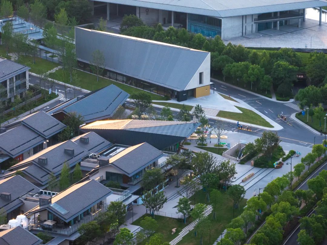 基于“現(xiàn)代為基底,遠(yuǎn)古為線索”的建筑語(yǔ)言,玉鳥(niǎo)集沿著良渚文明幾千年的歷史線索和良渚文化村村民近百年的生活軌跡,以良渚民居坡頂為基調(diào)的致敬中式園林院落風(fēng)格、模糊邊界的景觀和植被、簡(jiǎn)潔通達(dá)的動(dòng)線、復(fù)古而嶄新的商業(yè)街區(qū),成就了一座城市尺度的開(kāi)放精神棲息地。