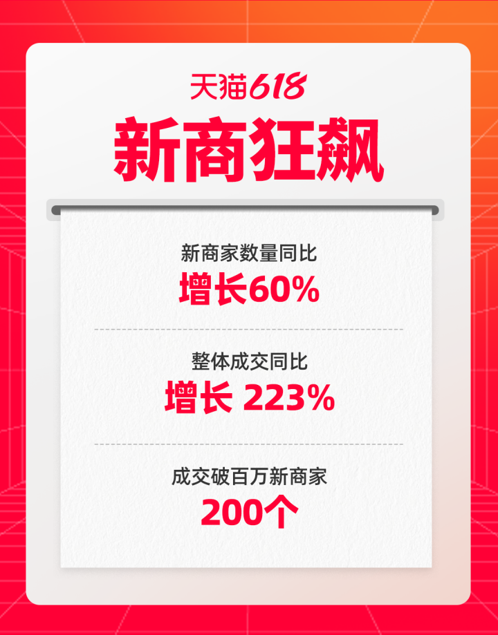 天貓618:首次參加的新商家整體成交增長(zhǎng)223%