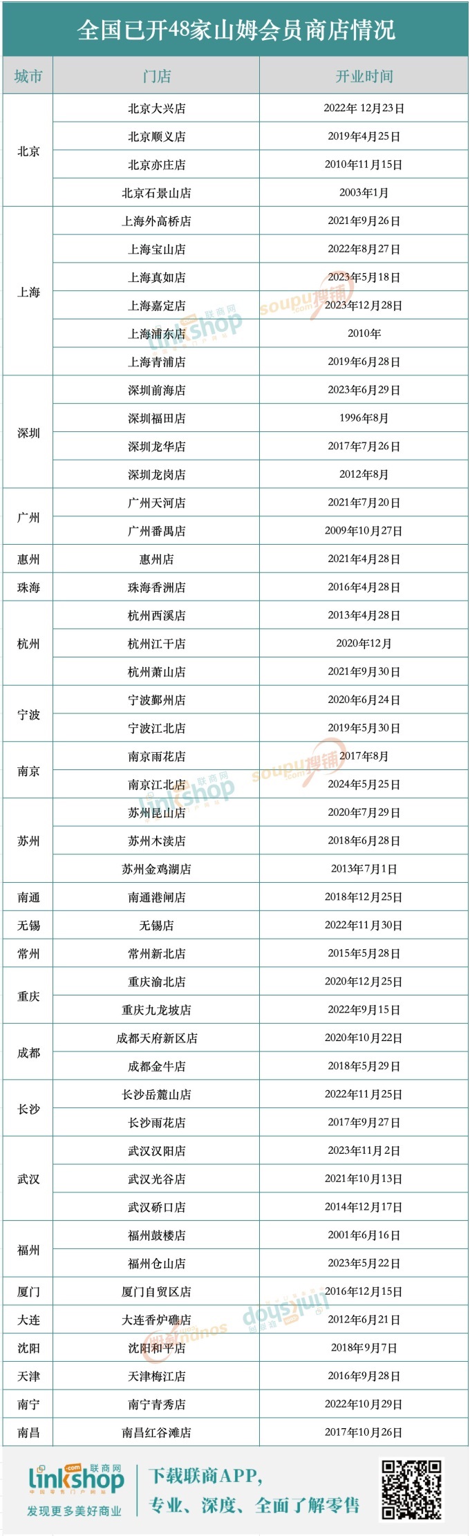 國內(nèi)的首家山姆會員店源自深圳福田,如今深圳也是全國已開山姆門店數(shù)量前三的城市。根據(jù)《聯(lián)商網(wǎng)》統(tǒng)計,截至目前山姆在全國已經(jīng)開出了48家門店。其中上海門店最多達(dá)6家,北京和深圳各有4家,杭州、蘇州、武漢各有3家。