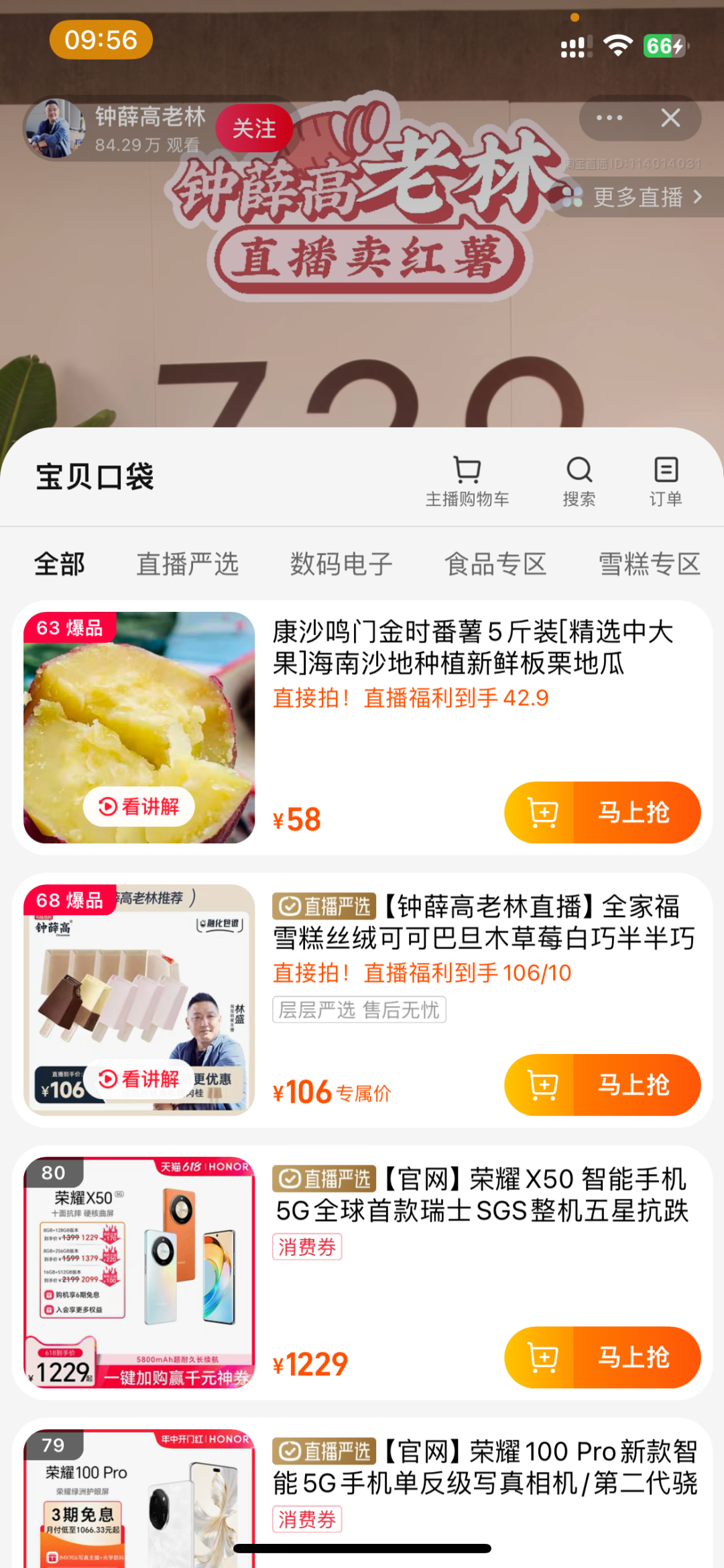《聯(lián)商網(wǎng)》了解到,林盛直播間總計(jì)上架了80款商品,主要涉及鐘薛高冰淇淋、紅薯、醬油等食品,以及數(shù)碼電子、家居百貨等。數(shù)據(jù)顯示,林盛開播3分鐘,觀眾超過5萬。開播總時(shí)長近5小時(shí),場(chǎng)觀84.2萬。截至目前,“鐘薛高老林”淘寶直播間粉絲數(shù)為1828人。