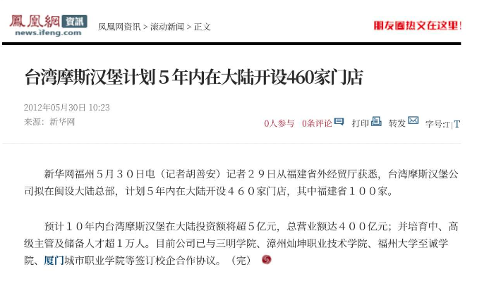日前,臺灣安心食品公司公告,公司與日本摩斯?jié)h堡合資,長期經(jīng)營廈門摩斯?jié)h堡海外業(yè)務(wù),衡量整體發(fā)展性,將重新整頓,現(xiàn)董事會決議裁撤摩斯?jié)h堡廈門海外業(yè)務(wù),未來有適合的經(jīng)營團(tuán)隊再重新出發(fā)。