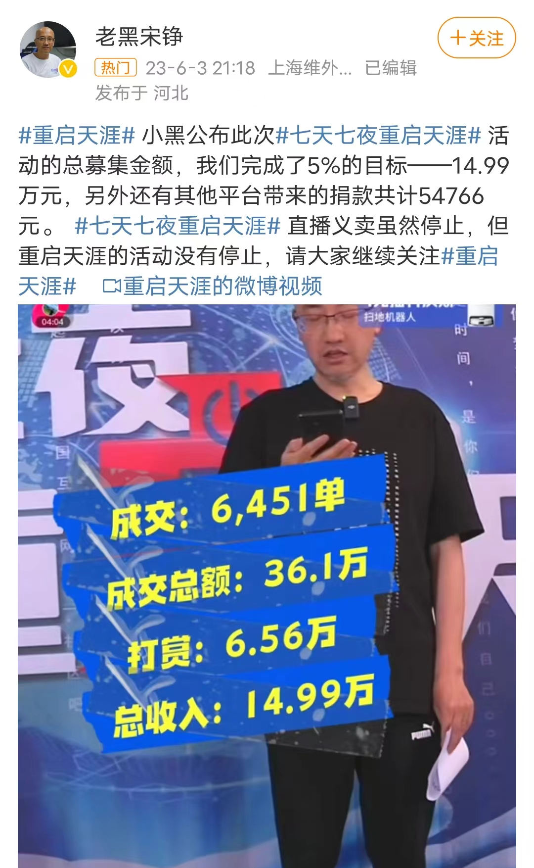 “七天七夜重啟天涯”直播收入僅14.99萬元