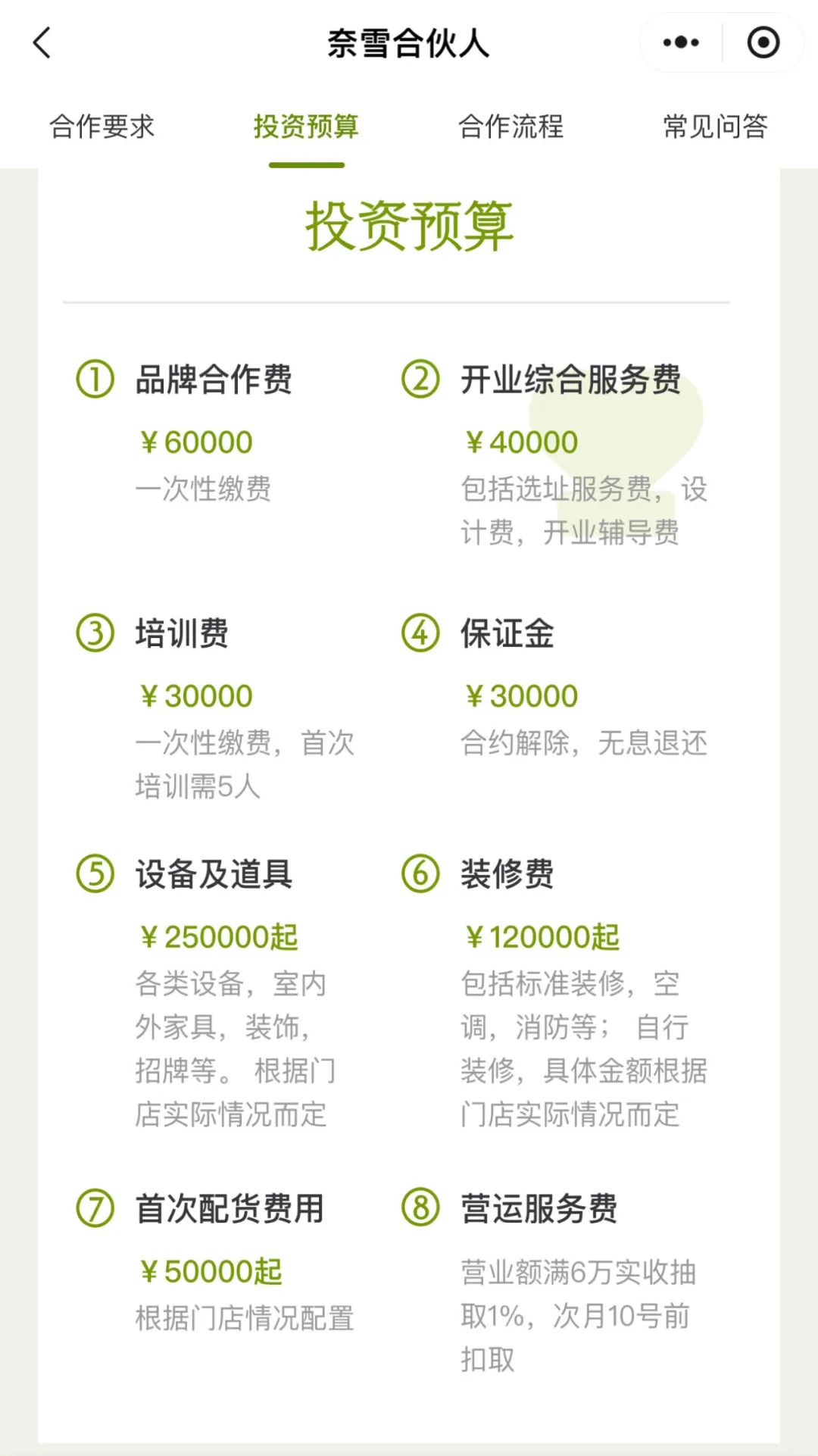 彼時(shí),據(jù)奈雪官方信息顯示,招募“合伙人”,對(duì)門店面積的要求明確限定在90~170平米的范圍,單店投資金額約100萬(wàn)元,合伙人驗(yàn)資門檻150萬(wàn)元。