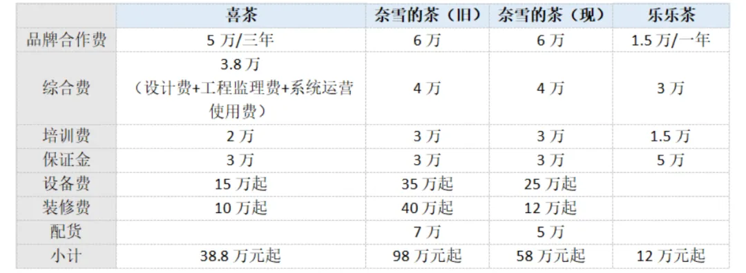 其中,品牌合作、綜合服務(wù)、培訓(xùn)等前期投入費(fèi)用共計(jì)13萬(wàn)元,保證金3萬(wàn)元;門店裝修的圖紙由奈雪總部提供,總裝修費(fèi)用在30萬(wàn)元左右。