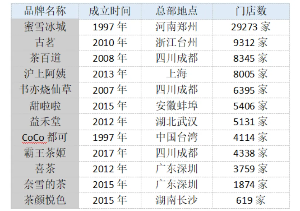其中不乏常見(jiàn)的連鎖品牌,包括20家蜜雪冰城、10家滬上阿姨、10家大杯茶、8家甜啦啦、3家茶百道、1家茉酸奶、1家霸王茶姬,以及去年6月,在鶴崗市比優(yōu)特時(shí)代廣場(chǎng)開(kāi)出的喜茶門店。