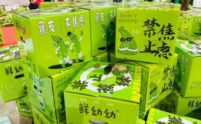 在淘工廠運(yùn)營(yíng)小二們的建議下,他們?yōu)椤跋勇闊钡拇蚬と艘徊⑴渲煤昧嘶ㄆ。也升?jí)了外包裝,一方面加厚了紙箱,換成了光亮的塑膜,另一方面升級(jí)了包裝的視覺效果,用綠色的主體色加上了“擺脫蕉慮”、“蕉友,不蕉慮”、“禁止蕉綠”等“果語”,既養(yǎng)眼,又有社交感。