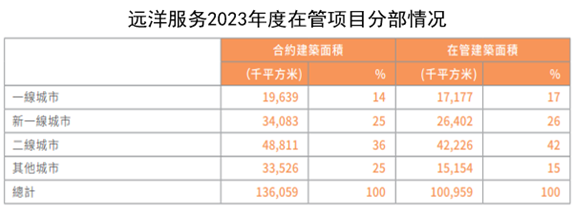 就客戶潛力來看,遠(yuǎn)洋服務(wù)可以依賴其廣闊的服務(wù)范圍逐步籌劃布局。年報顯示,遠(yuǎn)洋服務(wù)截至2023年12月31日總合約建筑面積達(dá)1.36億平方米,在管物業(yè)項目為506個,總在管建筑面積達(dá)到1.01億平方米,包括321個住宅小區(qū)、68個商寫物業(yè)及117個其他物業(yè)。