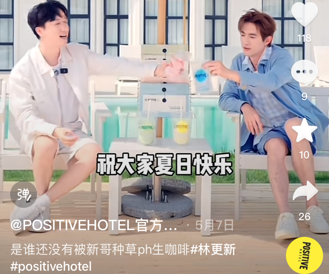 在請(qǐng)明星代言這件事上,POSITIVE HOTEL花了大價(jià)錢——請(qǐng)林更新做代言人,拍攝了一系列物料,在明星圈子內(nèi)也引發(fā)了一波小高潮,很多明星在片場(chǎng)被拍到拿著袋裝的咖啡,著實(shí)給品牌吸引了一波不小的流量。