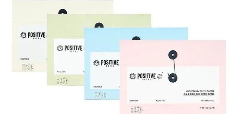 這個(gè)思路對(duì)應(yīng)到POSITIVE HOTEL上,那就是把杯子換成了袋子,去掉植脂末,主打保健的功能性。