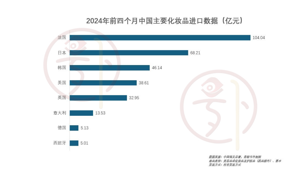 然而,據(jù)青眼號(hào)外梳理中國(guó)海關(guān)總署數(shù)據(jù),韓國(guó)自2019年起就已經(jīng)失去了中國(guó)化妝品第一大進(jìn)口國(guó)位置。海關(guān)數(shù)據(jù)顯示,2024年前四個(gè)月,法國(guó)繼續(xù)位居中國(guó)化妝品進(jìn)口國(guó)榜首。1-4月中國(guó)從法國(guó)進(jìn)口化妝品額超過(guò)100億元,排在第二與第三的分別為日本與韓國(guó),二者金額相加才勉強(qiáng)超過(guò)法國(guó)。