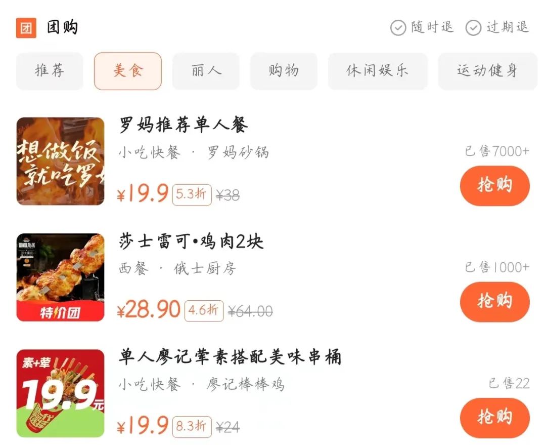 以北京朝陽大悅城為例,紅餐網(wǎng)在大眾點評搜團購套餐發(fā)現(xiàn),商場內(nèi)幾乎所有的餐廳都提供折扣套餐,像羅馬砂鍋、廖記棒棒雞等快餐店推出了19.9元的單人餐,部分日料店的折扣甚至低至2-3折。